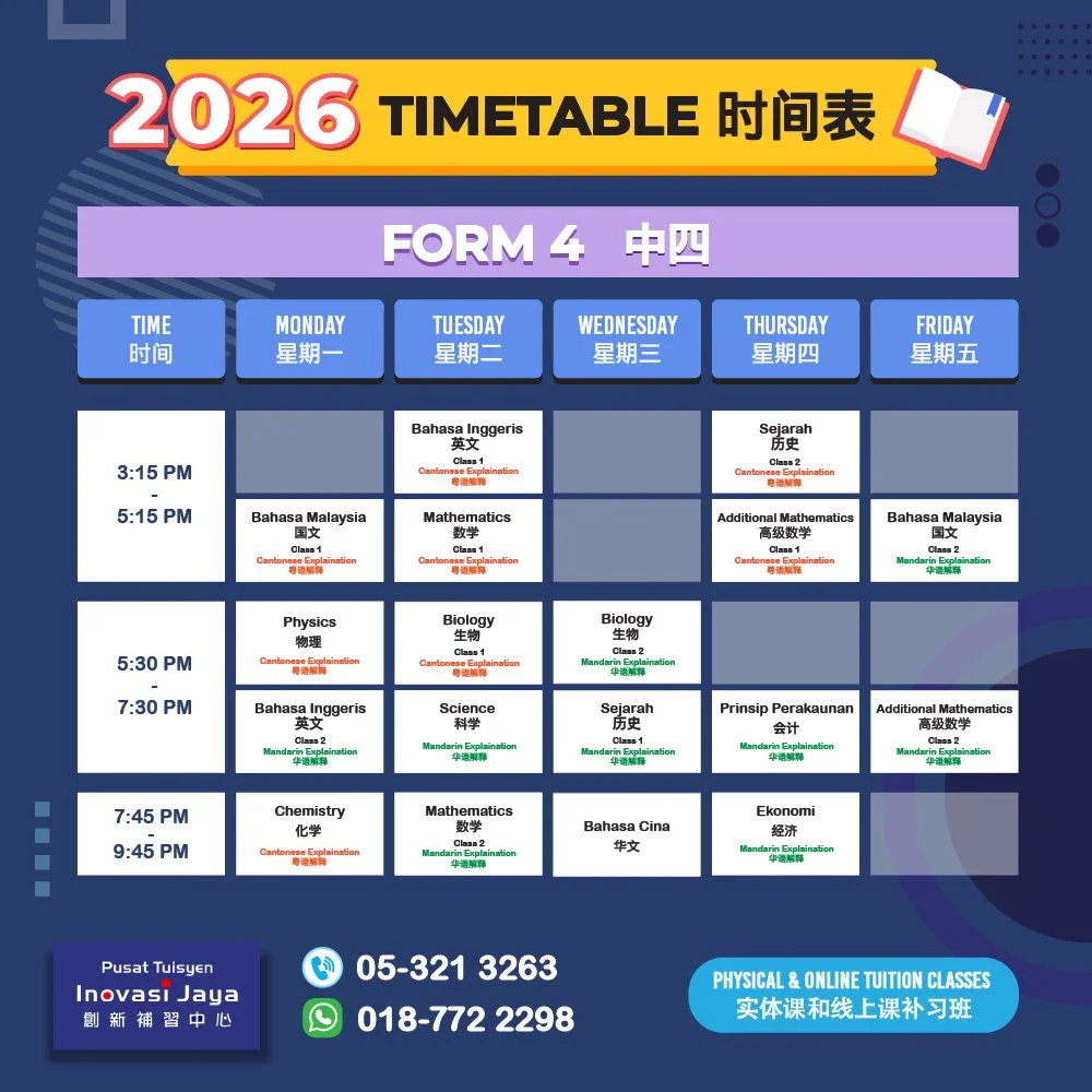 At Inovasi Jaya, we aim to provide quality education to all our students and assist them to reach greater academic achievement. We offer subjects tuition for Primary and Secondary Education and prepare our students with systematic notes, weekly classes, and intensive revision classes.